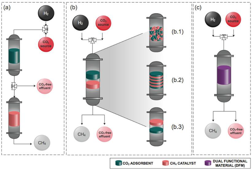 When sorbent regeneration is coupled with methanation, the thermodynamic driving force for sorbent regeneration is provided by the reaction. This increases the overall energy efficiency of the process and consequently improves their applicability in the Belgian energy system. To couple these processes, they will need to operate at the same temperature and pressure conditions. This raises important material challenges for both the sorbent and the catalyst.